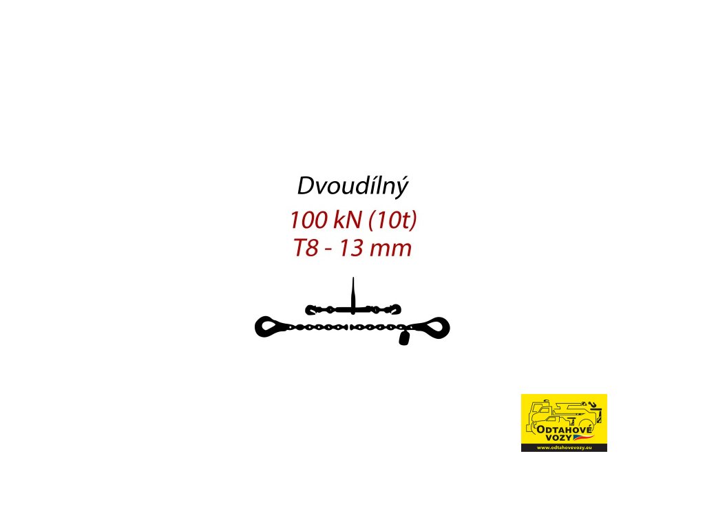 10 000 kg Přivazovací řetěz dvoudílný s háky, tř.G 8, řetěz 13 mm, 100kN