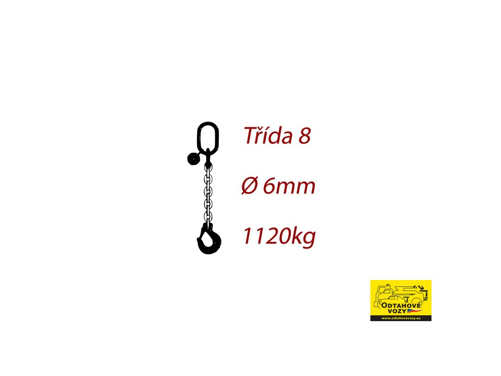 Vázací řetěz třídy 8 jednopramenný, oko-hák, průměr 6 mm, nosnost 1120 Kg