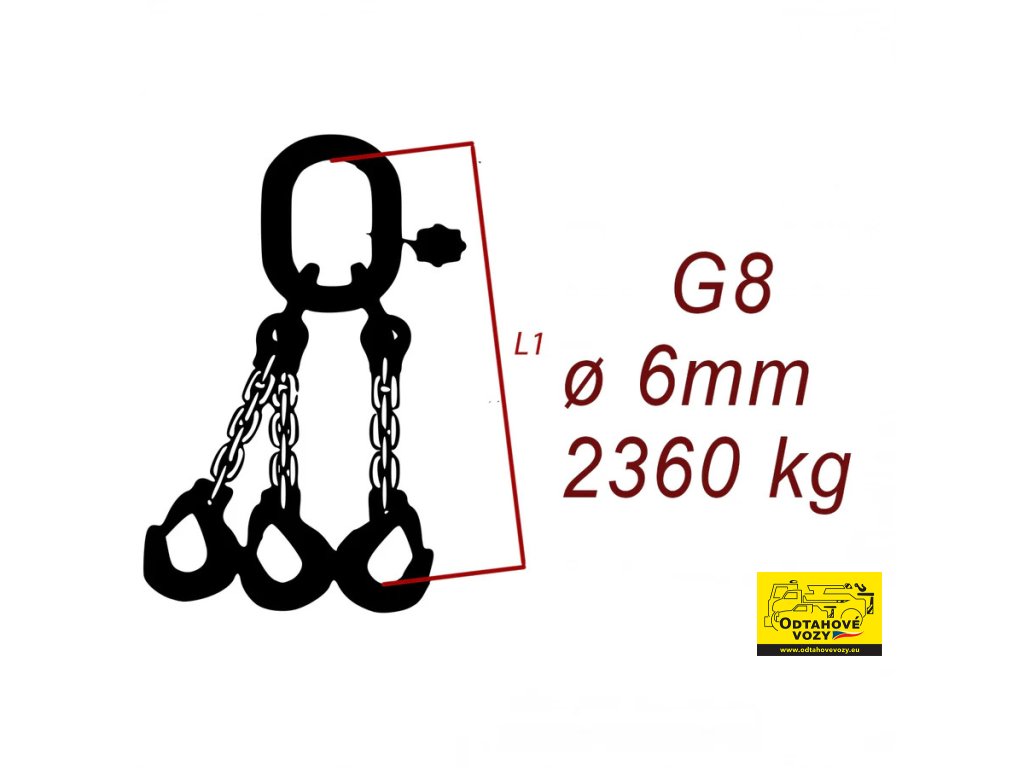2360 kg Vázací řetěz G8 třípramenný, oko-hák, 6mm