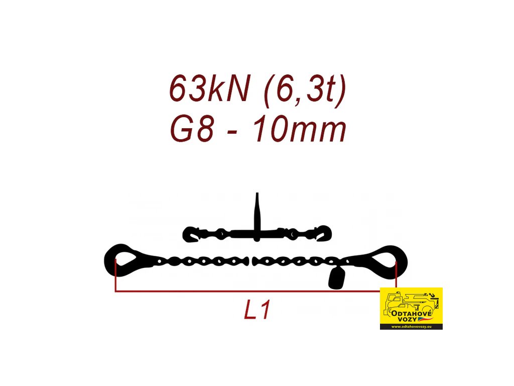 6 300 kg Přivazovací řetěz dvoudílný s háky, tř.G 8, řetěz 10 mm, 63kN