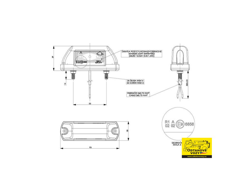 Boční obrysové světlo LED LD 703 bílo-červené 12/24V je vysoce kvalitní a výkonné osvětlovací zařízení určené k zajištění maximální viditelnosti a bezpečnosti ve všech podmínkách. Světlo je navrženo pro montáž na boční část vozidel, kde slouží jako signální prvek, který upozorňuje na přítomnost vozidla a jeho rozměry.