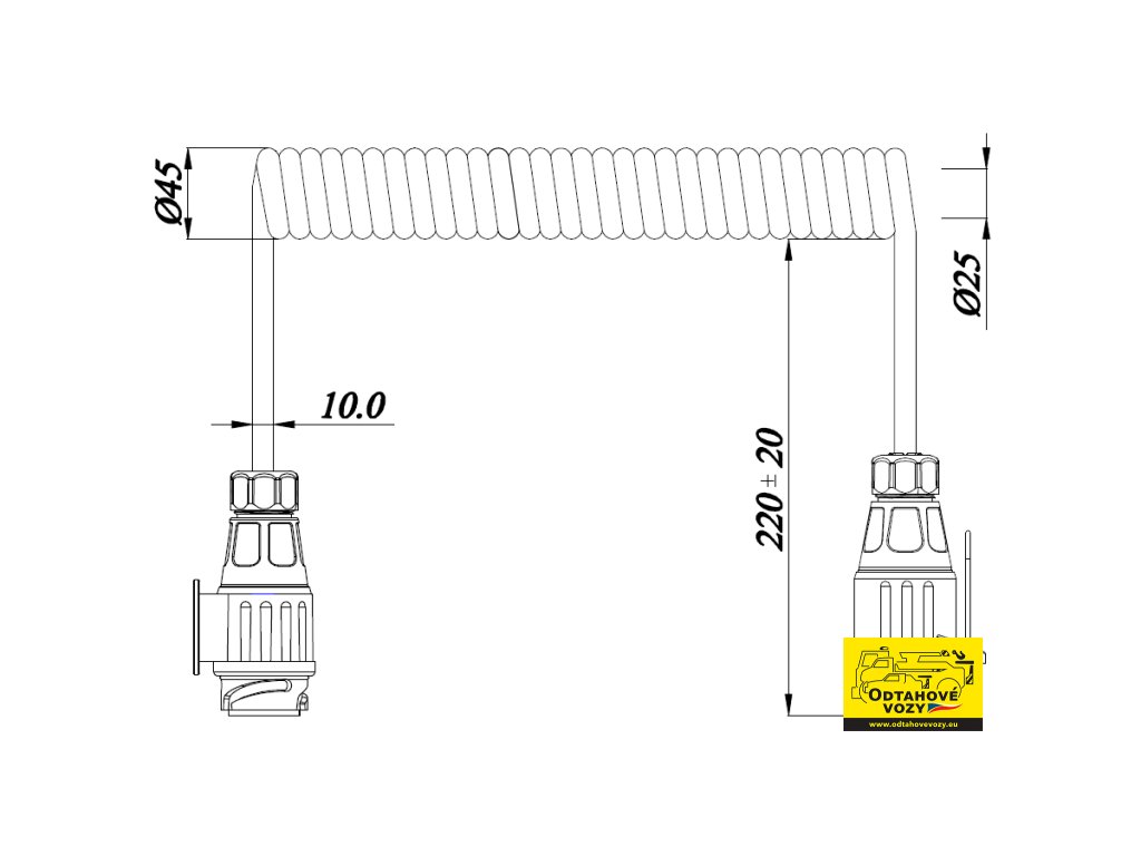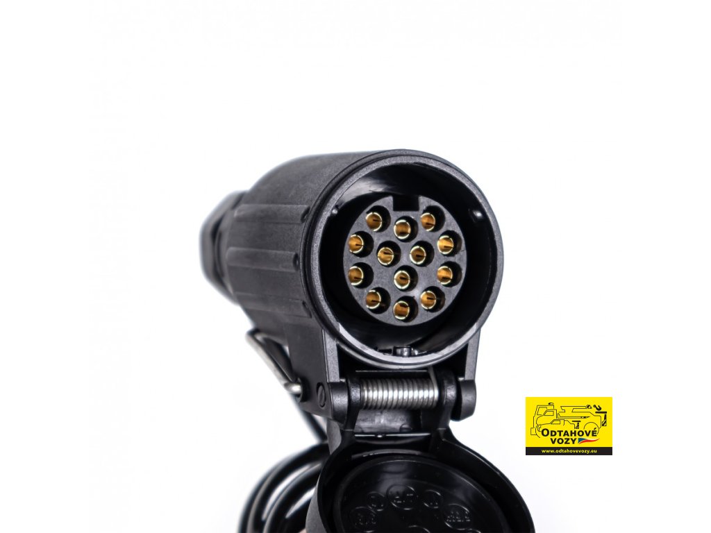 Elektrický spirálový 13PIN adaptér je propojovací kabel určený k přenosu elektrických signálů mezi vozidlem a přívěsným zařízením. Je zakončen 13pinovou zástrčkou a 13pinovou zásuvkou, které odpovídají evropské normě ISO 11446. Díky tomu je plně kompatibilní s většinou osobních i užitkových vozidel a obytných karavanů.