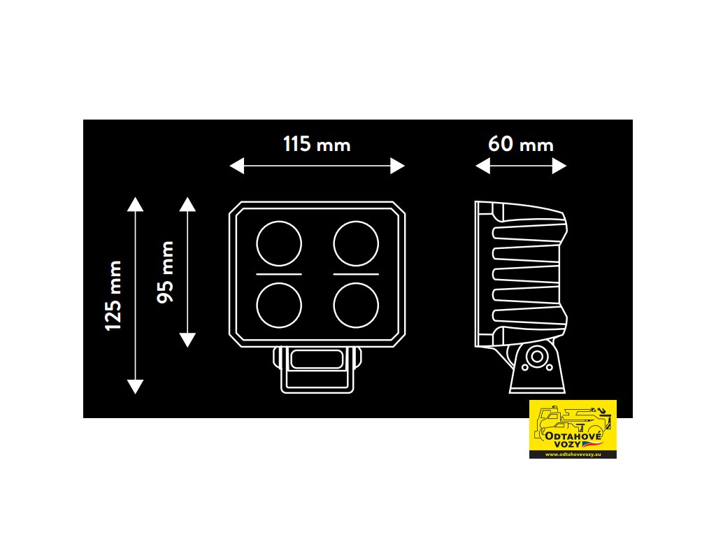 LED "záplavové" pracovní světlo má funkce: pracovní světlo, záplava. Jsou v ní 4 Led diody a její svítivost je 1000 LM. Spotřebuje 16W. Pracovní světlo je certifikované podle...