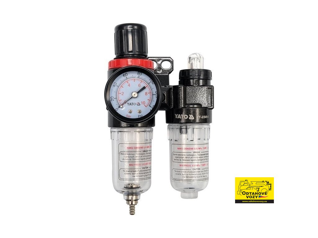 Regulátor tlaku vzduchu 1/4", max. 0,93MPa, s filtrem (25ccm) a přimazáváním (15ccm)