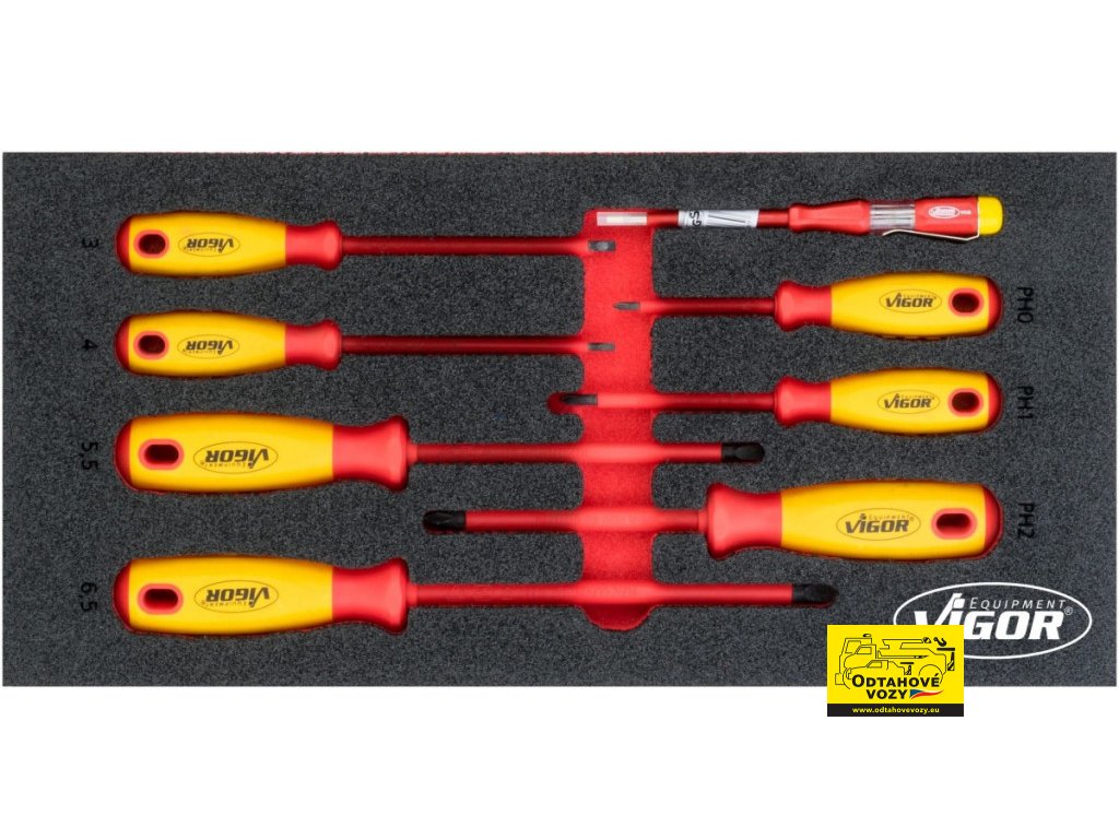 Šroubováky VDE ve výplni do dílenského vozíku, 8 ks VIGOR - V5013