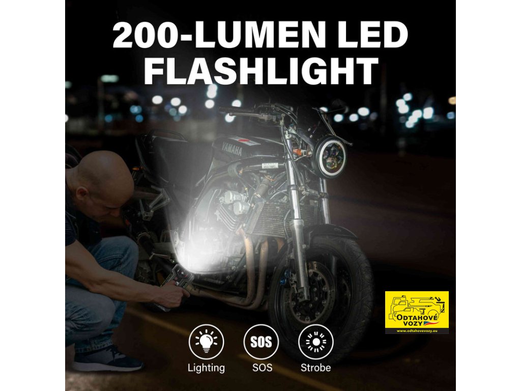 Startovací booster Lokithor J1350 Pro je multifunkční zařízení, které kombinuje výkonný jump starter, LED svítilnu a univerzální powerbanku v jednom kompaktním těle. Díky maximálnímu startovacímu proudu 1350Am a špičkovému výkonu 2000Am zvládne nastartovat benzínové motory do 6,5 litru a dieselové motory do 3,5 litru, což z něj činí ideálního pomocníka pro profesionály i náročné řidiče.