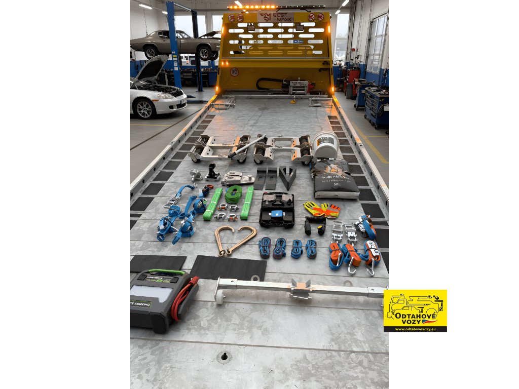 Důležitou výbavou odtahového vozu Mercedes Atego 1223 jsou také startovací kabely a další pomocné prostředky, díky nimž lze např. nastartovat vybitý vůz přímo na místě zásahu, aniž by bylo nutné jej ihned odtahovat. Zadní bezdrátová světla STROBOLED zvyšují bezpečnost při couvání, nakládání a manipulaci v omezených prostorech nebo za snížené viditelnosti.