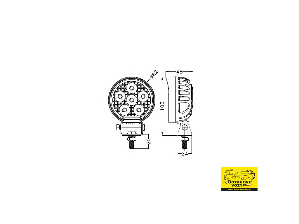Kulatá LED světlo má 4 LED diody, svítivost 1600 LM a spotřebu 16 W. Disponuje certifikací ECE R10. Délka kabelu je 0,3m. Napětí je 12V / 24V.