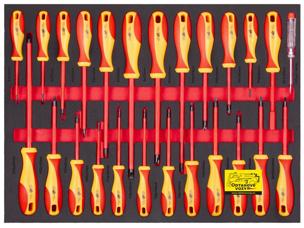 Sada VDE šroubováků ve výpni do dílenského vozíku, 25 ks - AH2404