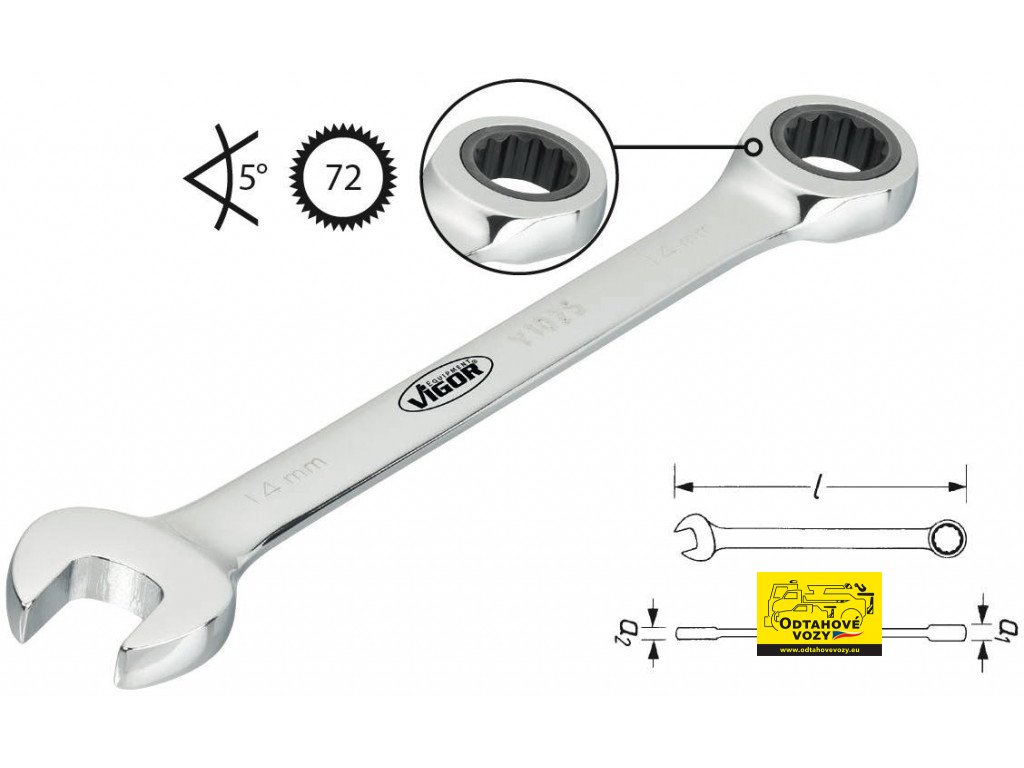 Ráčnový očkoplochý klíč, SW 12 mm, dlouhé provedení VIGOR V1022