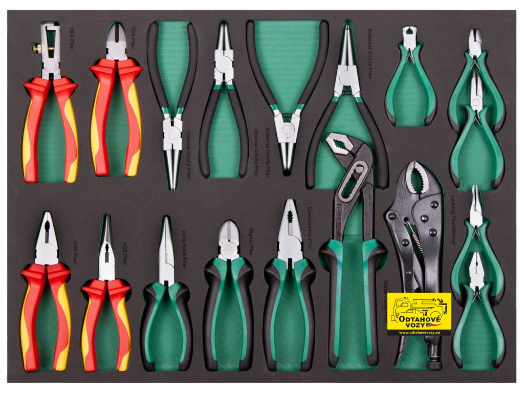 Sada kleští a VDE kleště ve výplni do dílenského vozíku, 18 ks - AH2348