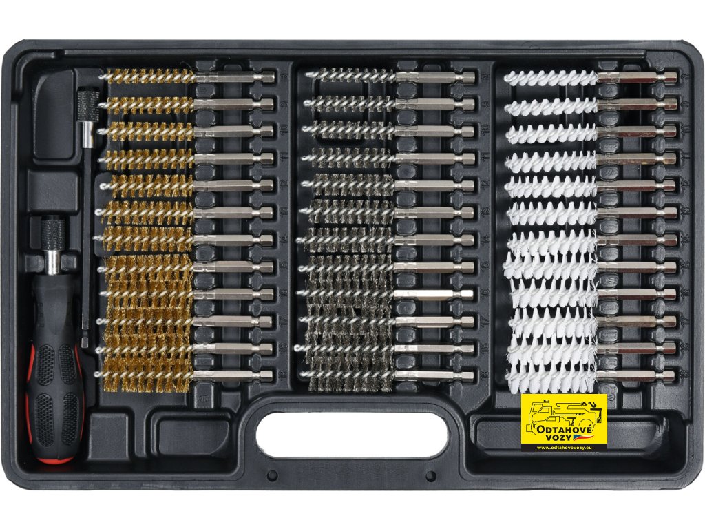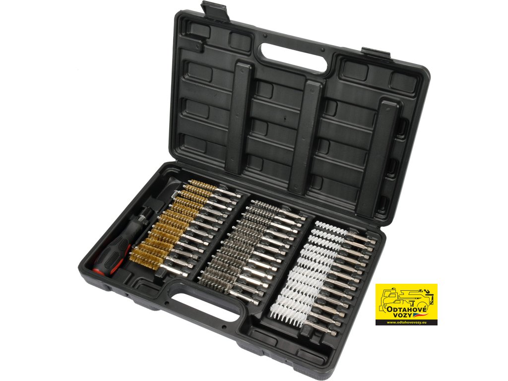 Nerezové, nylonové a mosazné kartáče o průměru 8 až 19 mm. V plastovém kufříku.