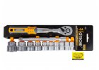 Obsáhlá gola sada 1/4" a 1/2", celkem 94 kusů v plastovém kufru, obsahuje mj. nástrčné klíče a ráčny, prodlužovací a kloubové adaptéry, vratidla, bity a spoustu dalšího.