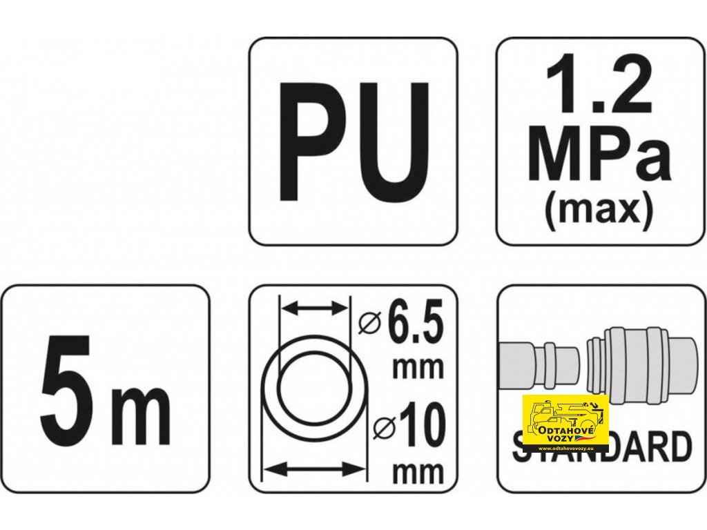 Spirálová vzduchová hadice 5m, PU průměr vnitřní 6,5mm, vnější 10mm - YT-24204