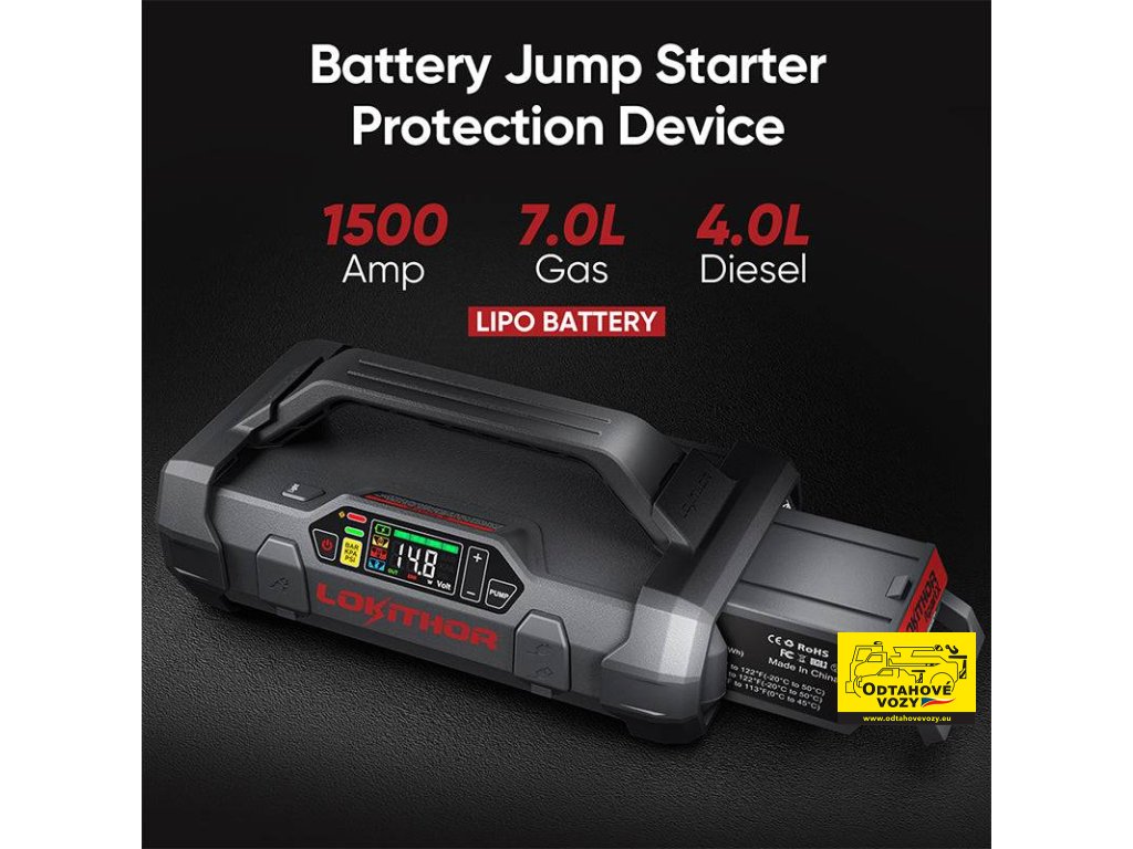Lokithor ApartX s přiloženou baterií LiFe dokáže nastartovat prakticky jakékoli osobní vozidlo, SUV nebo dodávku. Díky 2500A špičkovému proudu zvládne i náročné situace, jako je startování v mrazivém počasí nebo u vozidel s vybitou baterií.