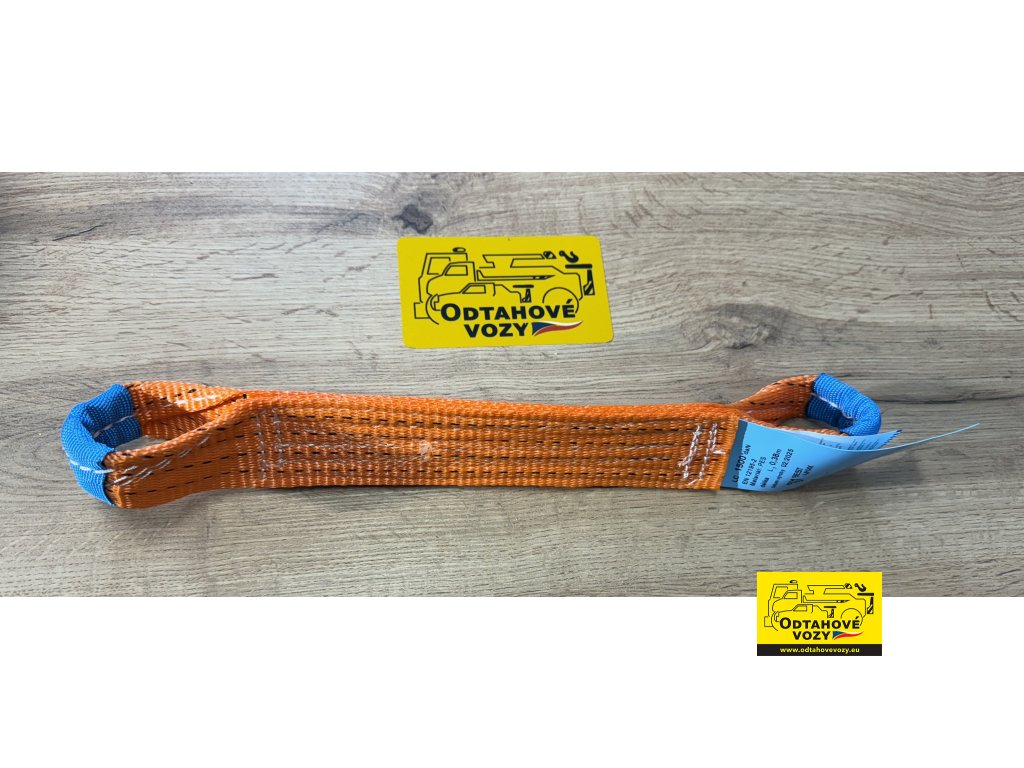 Tento upínací popruh je navržen speciálně pro fixaci kol odtahovaných vozidel o šířce 50 mm a délka 380 m zajišťuje pevné spojení k odtahovému vozidlu.